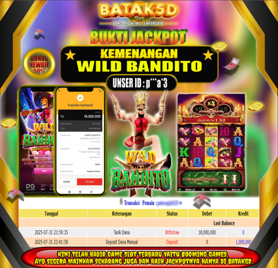 Selamat Kepada Member Setia BATAK5D dengan USER ID : P**A3 di JACKPOT KEMENANGAN , WILLD BANDITO RP.18,000,000 LUNAS langsung mendarat ke rekening tanpa bertele – tele. Terimakasih telah mempercayakan BATAK5D sebagai Situs Bandar Terpercaya dan Terjamin Aman! Tunggu apalagi? Daftar sekarang juga bersama BATAK5D dan dapatkan berbagai promo menarik setiap harinya.