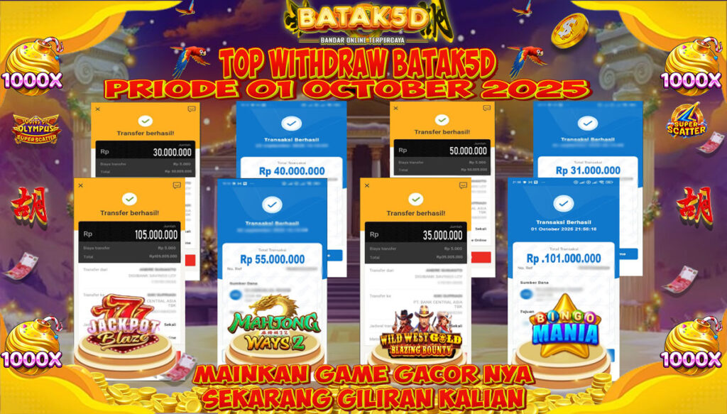 Selamat Kepada Member Setia BATAK5D dengan TOP WITHDRAW BATAK5D PRIODE 01 OCTOBER 2025 langsung mendarat ke rekening tanpa bertele – tele. Terimakasih telah mempercayakan BATAK5D sebagai Situs Bandar Terpercaya dan Terjamin Aman! Tunggu apalagi? Daftar sekarang juga bersama BATAK5D dan dapatkan berbagai promo menarik setiap harinya.
