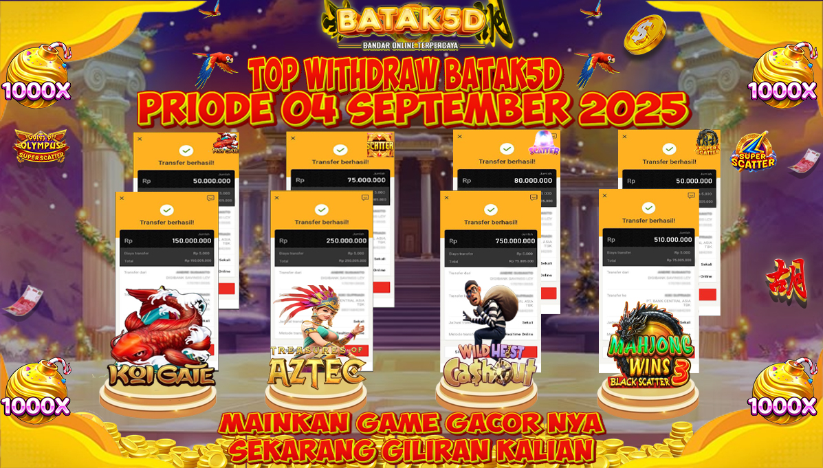 Selamat Kepada Member Setia BATAK5D dengan TOP WITHDRAW BATAK5D PRIODE 04 SEPTEMBER 2025 langsung mendarat ke rekening tanpa bertele – tele. Terimakasih telah mempercayakan BATAK5D sebagai Situs Bandar Terpercaya dan Terjamin Aman! Tunggu apalagi? Daftar sekarang juga bersama BATAK5D dan dapatkan berbagai promo menarik setiap harinya.