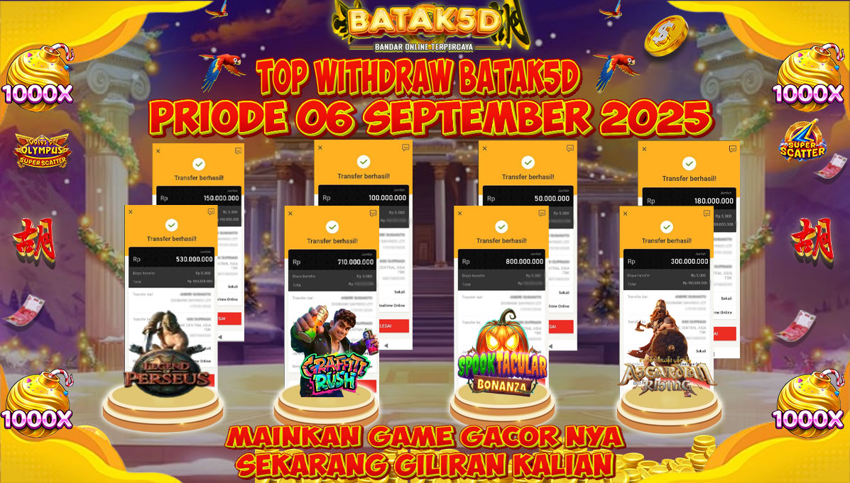 Selamat Kepada Member Setia BATAK5D dengan TOP WITHDRAW BATAK5D PRIODE 06 SEPTEMBER 2025 langsung mendarat ke rekening tanpa bertele – tele. Terimakasih telah mempercayakan BATAK5D sebagai Situs Bandar Terpercaya dan Terjamin Aman! Tunggu apalagi? Daftar sekarang juga bersama BATAK5D dan dapatkan berbagai promo menarik setiap harinya.