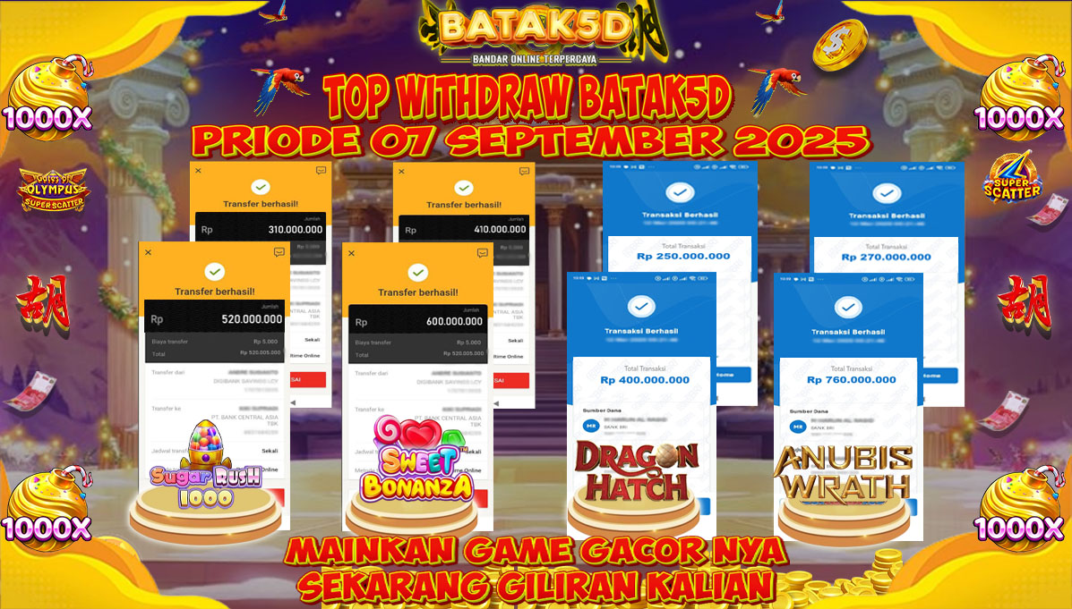 Selamat Kepada Member Setia BATAK5D dengan TOP WITHDRAW BATAK5D PRIODE 07 SEPTEMBER 2025 langsung mendarat ke rekening tanpa bertele – tele. Terimakasih telah mempercayakan BATAK5D sebagai Situs Bandar Terpercaya dan Terjamin Aman! Tunggu apalagi? Daftar sekarang juga bersama BATAK5D dan dapatkan berbagai promo menarik setiap harinya.