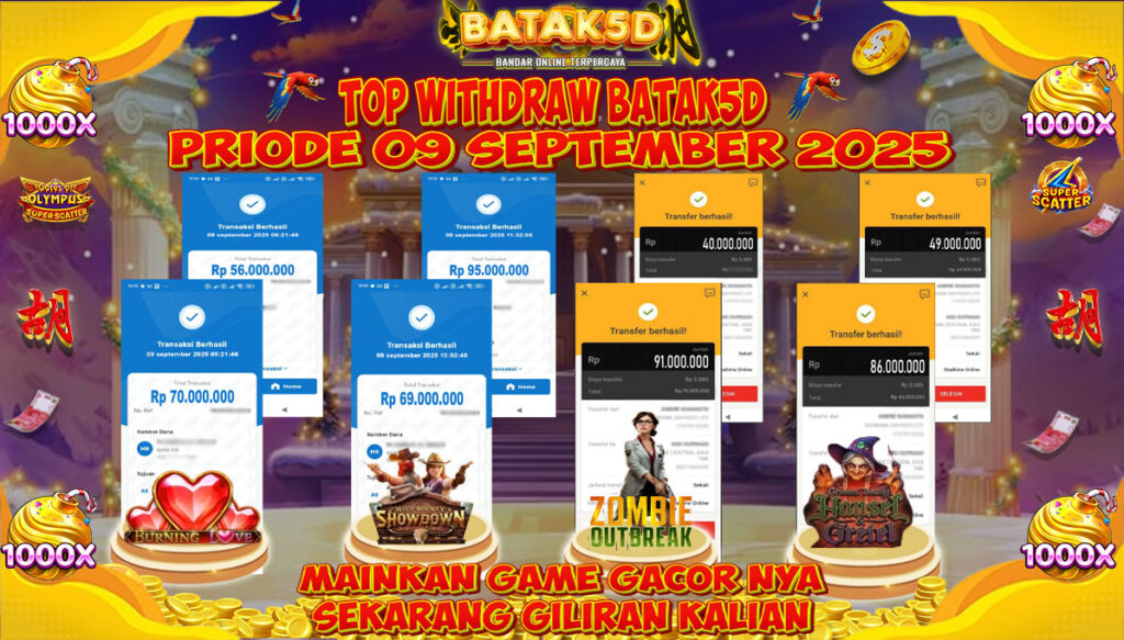 Selamat Kepada Member Setia BATAK5D dengan TOP WITHDRAW BATAK5D PRIODE 09 SEPTEMBER 2025 langsung mendarat ke rekening tanpa bertele – tele. Terimakasih telah mempercayakan BATAK5D sebagai Situs Bandar Terpercaya dan Terjamin Aman! Tunggu apalagi? Daftar sekarang juga bersama BATAK5D dan dapatkan berbagai promo menarik setiap harinya.