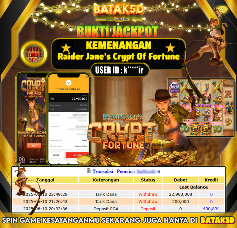 Selamat Kepada Member Setia BATAK5D dengan USER ID : k*****ir di JACKPOT KEMENANGAN , Raider Jane s Crypt Of Fortune RP.32,900,000 LUNAS langsung mendarat ke rekening tanpa bertele – tele. Terimakasih telah mempercayakan BATAK5D sebagai Situs Bandar Terpercaya dan Terjamin Aman! Tunggu apalagi? Daftar sekarang juga bersama BATAK5D dan dapatkan berbagai promo menarik setiap harinya.