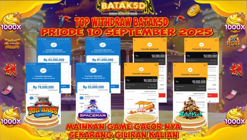 Selamat Kepada Member Setia BATAK5D dengan TOP WITHDRAW BATAK5D PRIODE 10 SEPTEMBER 2025 langsung mendarat ke rekening tanpa bertele – tele. Terimakasih telah mempercayakan BATAK5D sebagai Situs Bandar Terpercaya dan Terjamin Aman! Tunggu apalagi? Daftar sekarang juga bersama BATAK5D dan dapatkan berbagai promo menarik setiap harinya.
