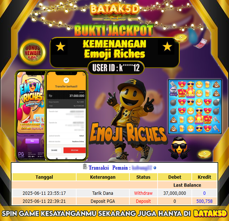 Selamat Kepada Member Setia BATAK5D dengan USER ID : k*****12 di JACKPOT KEMENANGAN , Emoji Riches RP.37,000,000 LUNAS langsung mendarat ke rekening tanpa bertele – tele. Terimakasih telah mempercayakan BATAK5D sebagai Situs Bandar Terpercaya dan Terjamin Aman! Tunggu apalagi? Daftar sekarang juga bersama BATAK5D dan dapatkan berbagai promo menarik setiap harinya.