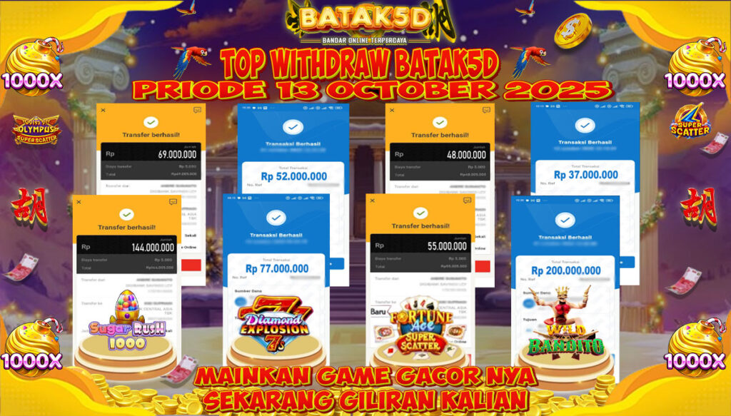 Selamat Kepada Member Setia BATAK5D dengan TOP WITHDRAW BATAK5D PRIODE 13 OCTOBER 2025 langsung mendarat ke rekening tanpa bertele – tele. Terimakasih telah mempercayakan BATAK5D sebagai Situs Bandar Terpercaya dan Terjamin Aman! Tunggu apalagi? Daftar sekarang juga bersama BATAK5D dan dapatkan berbagai promo menarik setiap harinya.