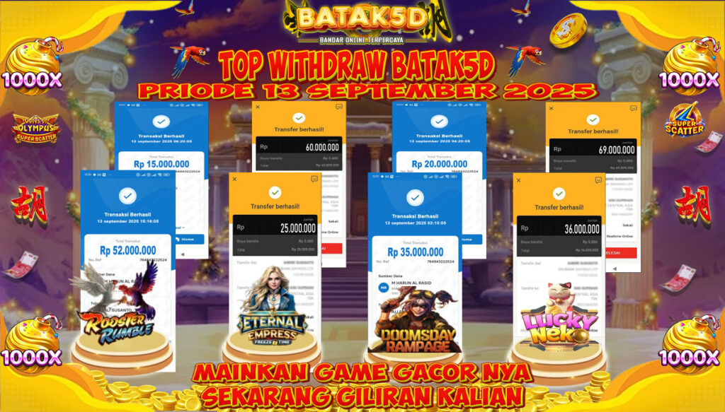 Selamat Kepada Member Setia BATAK5D dengan TOP WITHDRAW BATAK5D PRIODE 13 SEPTEMBER 2025 langsung mendarat ke rekening tanpa bertele – tele. Terimakasih telah mempercayakan BATAK5D sebagai Situs Bandar Terpercaya dan Terjamin Aman! Tunggu apalagi? Daftar sekarang juga bersama BATAK5D dan dapatkan berbagai promo menarik setiap harinya.