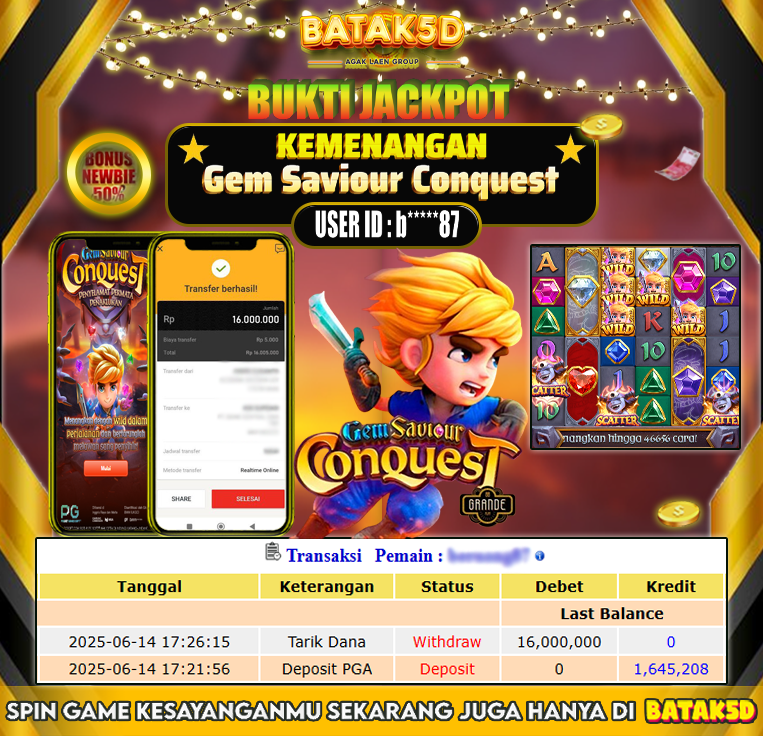 Selamat Kepada Member Setia BATAK5D dengan USER ID : b*****87 di JACKPOT KEMENANGAN , Gem Saviour Conquest RP.16,000,000 LUNAS langsung mendarat ke rekening tanpa bertele – tele. Terimakasih telah mempercayakan BATAK5D sebagai Situs Bandar Terpercaya dan Terjamin Aman! Tunggu apalagi? Daftar sekarang juga bersama BATAK5D dan dapatkan berbagai promo menarik setiap harinya.