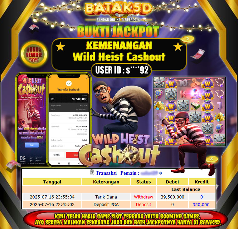 Selamat Kepada Member Setia BATAK5D dengan USER ID : s****92 di JACKPOT KEMENANGAN , Wild Heist Cashout RP.39,500,000 LUNAS langsung mendarat ke rekening tanpa bertele – tele. Terimakasih telah mempercayakan BATAK5D sebagai Situs Bandar Terpercaya dan Terjamin Aman! Tunggu apalagi? Daftar sekarang juga bersama BATAK5D dan dapatkan berbagai promo menarik setiap harinya.