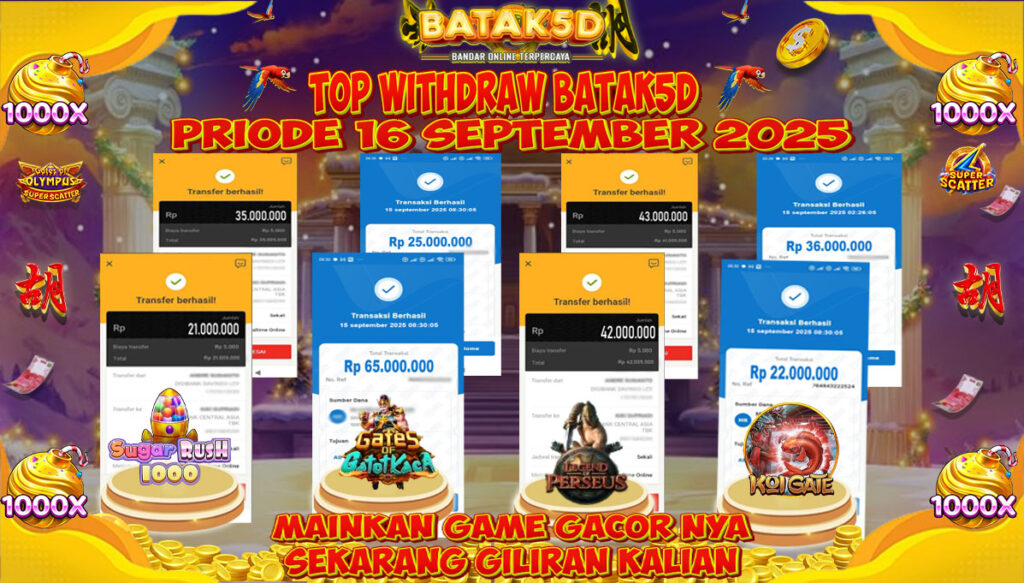 Selamat Kepada Member Setia BATAK5D dengan TOP WITHDRAW BATAK5D PRIODE 16 SEPTEMBER 2025 langsung mendarat ke rekening tanpa bertele – tele. Terimakasih telah mempercayakan BATAK5D sebagai Situs Bandar Terpercaya dan Terjamin Aman! Tunggu apalagi? Daftar sekarang juga bersama BATAK5D dan dapatkan berbagai promo menarik setiap harinya.
