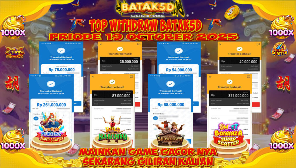 Selamat Kepada Member Setia BATAK5D dengan TOP WITHDRAW BATAK5D PRIODE 19 OCTOBER 2025 langsung mendarat ke rekening tanpa bertele – tele. Terimakasih telah mempercayakan BATAK5D sebagai Situs Bandar Terpercaya dan Terjamin Aman! Tunggu apalagi? Daftar sekarang juga bersama BATAK5D dan dapatkan berbagai promo menarik setiap harinya.