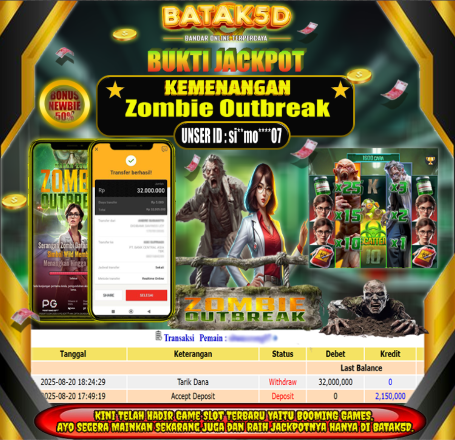 Selamat Kepada Member Setia BATAK5D dengan USER ID :SI**MO****07 di JACKPOT KEMENANGAN, ZOMBIE OUTBREAK RP.32,000,000 LUNAS langsung mendarat ke rekening tanpa bertele – tele. Terimakasih telah mempercayakan BATAK5D sebagai Situs Bandar Terpercaya dan Terjamin Aman! Tunggu apalagi? Daftar sekarang juga bersama BATAK5D dan dapatkan berbagai promo menarik setiap harinya.