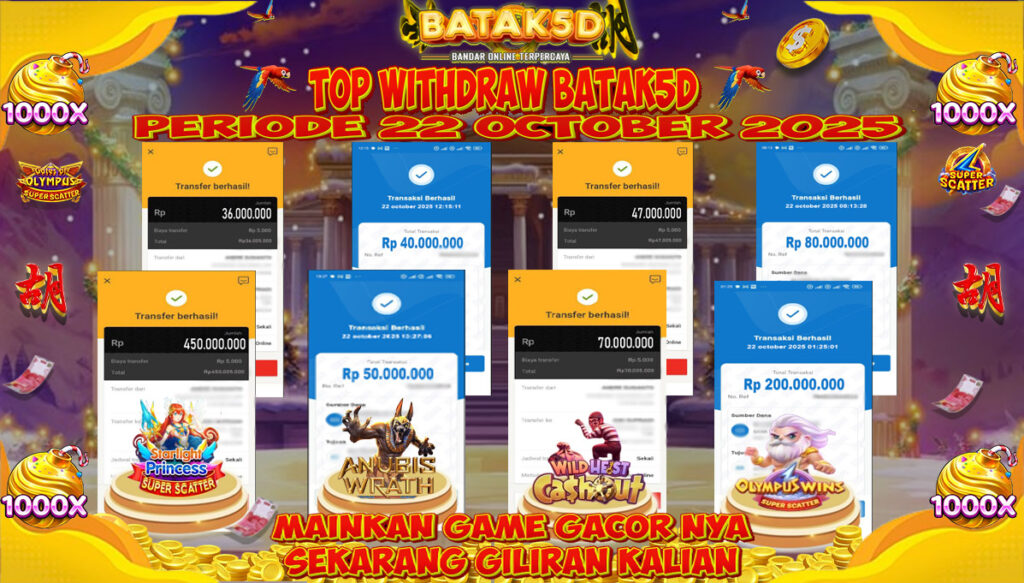 Selamat Kepada Member Setia BATAK5D dengan TOP WITHDRAW BATAK5D PRIODE 22 OCTOBER 2025 langsung mendarat ke rekening tanpa bertele – tele. Terimakasih telah mempercayakan BATAK5D sebagai Situs Bandar Terpercaya dan Terjamin Aman! Tunggu apalagi? Daftar sekarang juga bersama BATAK5D dan dapatkan berbagai promo menarik setiap harinya.