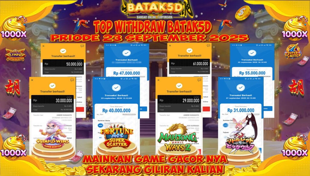 Selamat Kepada Member Setia BATAK5D dengan TOP WITHDRAW BATAK5D PRIODE 23 SEPTEMBER 2025 langsung mendarat ke rekening tanpa bertele – tele. Terimakasih telah mempercayakan BATAK5D sebagai Situs Bandar Terpercaya dan Terjamin Aman! Tunggu apalagi? Daftar sekarang juga bersama BATAK5D dan dapatkan berbagai promo menarik setiap harinya.
