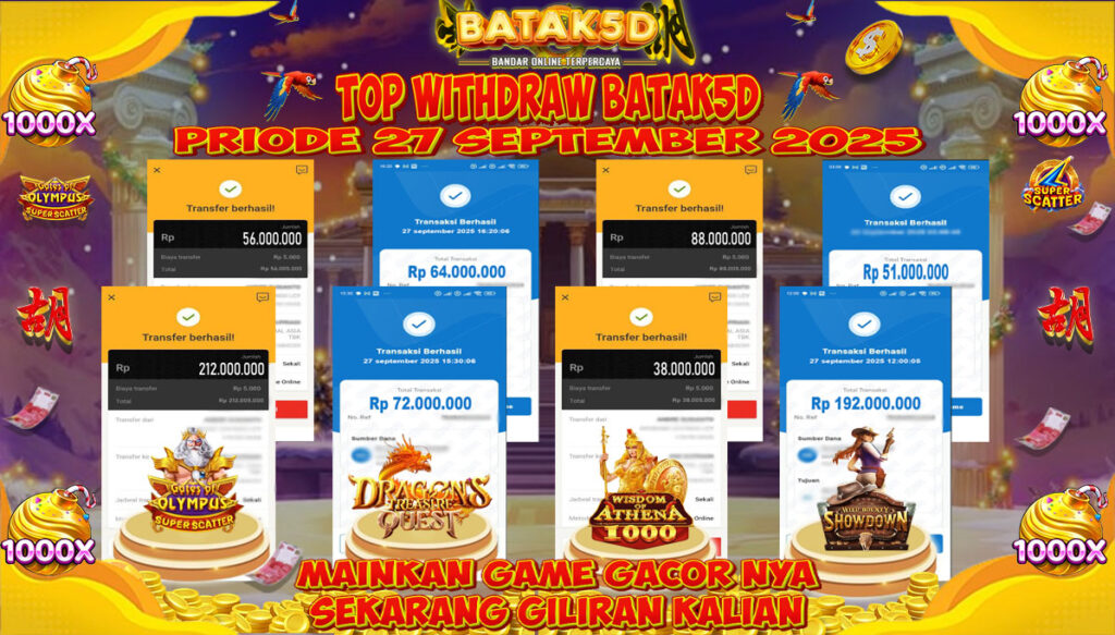 Selamat Kepada Member Setia BATAK5D dengan TOP WITHDRAW BATAK5D PRIODE 27 SEPTEMBER 2025 langsung mendarat ke rekening tanpa bertele – tele. Terimakasih telah mempercayakan BATAK5D sebagai Situs Bandar Terpercaya dan Terjamin Aman! Tunggu apalagi? Daftar sekarang juga bersama BATAK5D dan dapatkan berbagai promo menarik setiap harinya.
