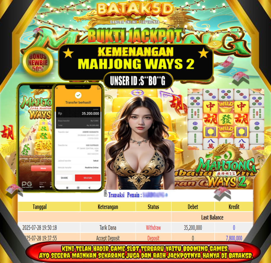 Selamat Kepada Member Setia BATAK5D dengan USER ID : S**BO**G di JACKPOT KEMENANGAN , MAHJONG WAYS 2 RP.35,200,000 LUNAS langsung mendarat ke rekening tanpa bertele – tele. Terimakasih telah mempercayakan BATAK5D sebagai Situs Bandar Terpercaya dan Terjamin Aman! Tunggu apalagi? Daftar sekarang juga bersama BATAK5D dan dapatkan berbagai promo menarik setiap harinya.