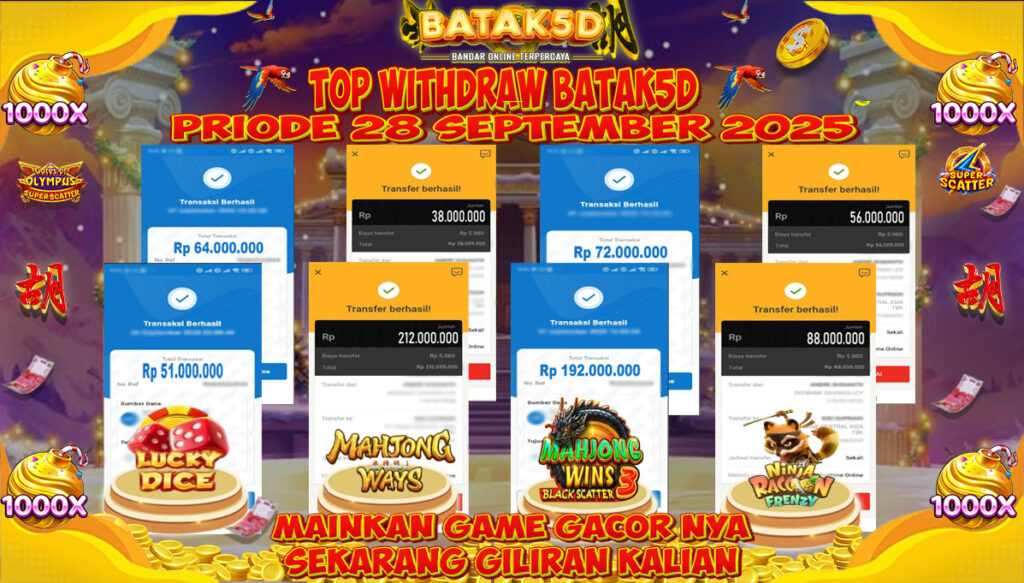 Selamat Kepada Member Setia BATAK5D dengan TOP WITHDRAW BATAK5D PRIODE 28 SEPTEMBER 2025 langsung mendarat ke rekening tanpa bertele – tele. Terimakasih telah mempercayakan BATAK5D sebagai Situs Bandar Terpercaya dan Terjamin Aman! Tunggu apalagi? Daftar sekarang juga bersama BATAK5D dan dapatkan berbagai promo menarik setiap harinya.