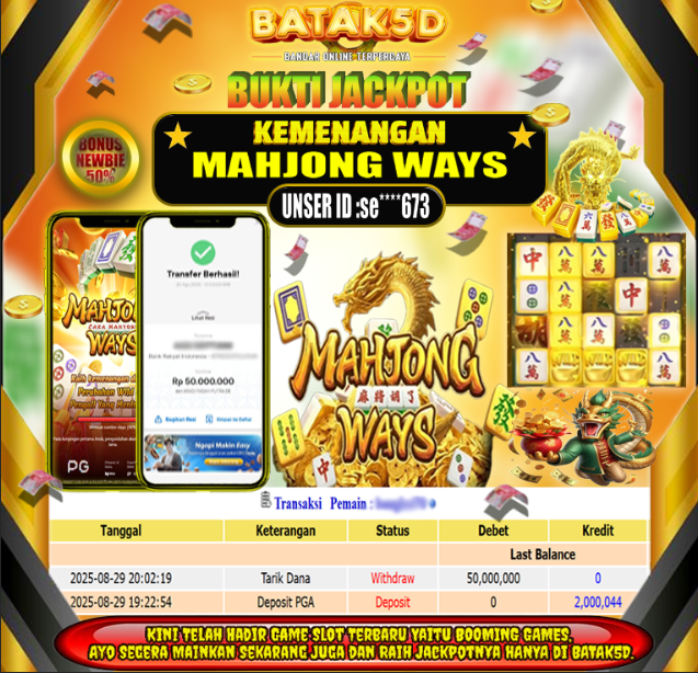 Selamat Kepada Member Setia BATAK5D dengan USER ID :SE****673 di JACKPOT KEMENANGAN, MAHJONG WAYS RP.50,000,000 LUNAS langsung mendarat ke rekening tanpa bertele – tele. Terimakasih telah mempercayakan BATAK5D sebagai Situs Bandar Terpercaya dan Terjamin Aman! Tunggu apalagi? Daftar sekarang juga bersama BATAK5D dan dapatkan berbagai promo menarik setiap harinya.
